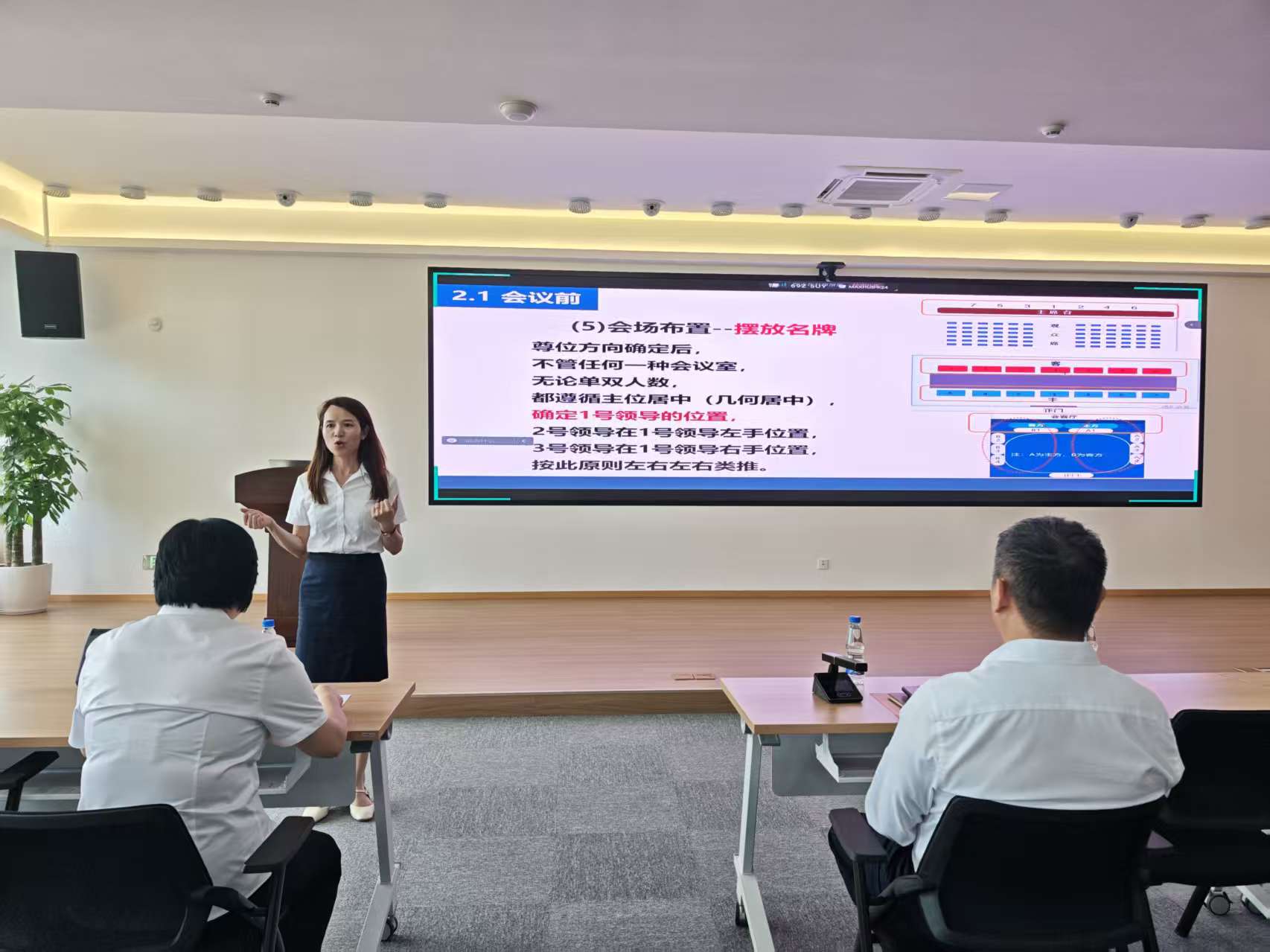 本次活动邀请综合管理部业务经理张夏真作会议、接待与商务礼仪专题分享,通过现场举例、图示、演示等方式,讲解了会议接待流程、礼仪规范及职场社交技巧,有效帮助员工提升职业素养,促进跨部门沟通与协作,助力企业良好形象建设。