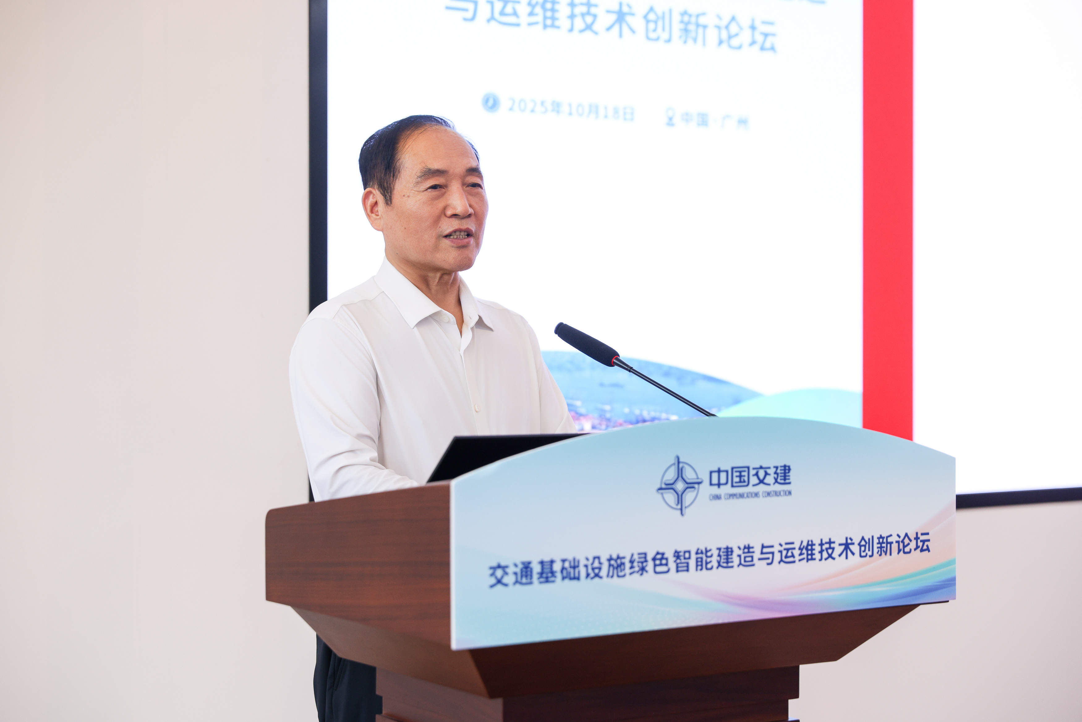 四航局副总经理、总工程师梁杰忠在致辞中回顾了四航局与研究院自创业初期至参与港珠澳大桥、深中通道等国家超级工程的合作历程。他表示,四航局将持续支持研究院在绿色智能建造领域的技术探索,并期待以本次论坛为契机,与各方深化合作,共同推动行业高质量发展。