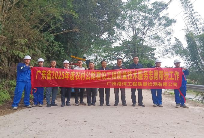 近日,广州港湾工程质量检测有限公司(以下简称 “检测公司”)承担的2025年度农村公路建设工程质量技术服务志愿帮扶任务全面完成。这是检测公司连续9年践行央企使命,以专业力量助力“四好农村路”高质量发展,为广东“百千万工程”注入交通动能。
