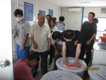 期间,老专家王宝鑫高工参观了各试验室,并对当时正在试配混凝土的试验员进行了技术讲解和指导,最后和中心试验室人员及各工地试验室人员进行了座谈,传授了他多年来积累的经验和知识。