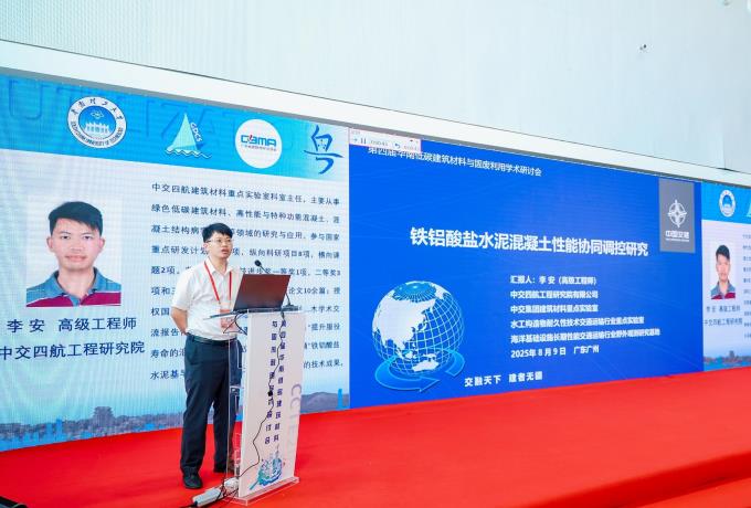 李安作了题为“铁铝酸盐水泥混凝土性能协同调控研究”的报告,依托在研的“十四五”国家重点研发计划项目,系统介绍了铁铝酸盐水泥混凝土降成本和工作性、力学性能与耐久性协同调控的研究成果,对该材料在海洋环境基础设施中的应用提供了技术支撑。